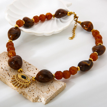 Maillard estilo 18k banhado a ouro aço inoxidável olho pingente colar marrom acrílico frisado camisola cadeia para as mulheres
