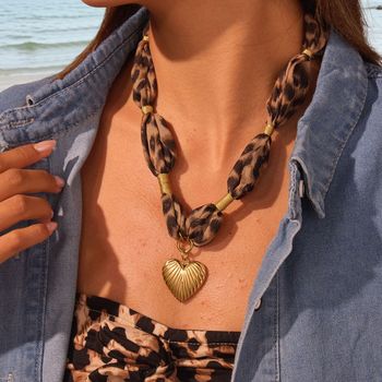 Europeu americano clássico aço inoxidável colar sexy leopardo impressão cachecol coração pingente não-desvanecimento Lockbone cadeia-atacado