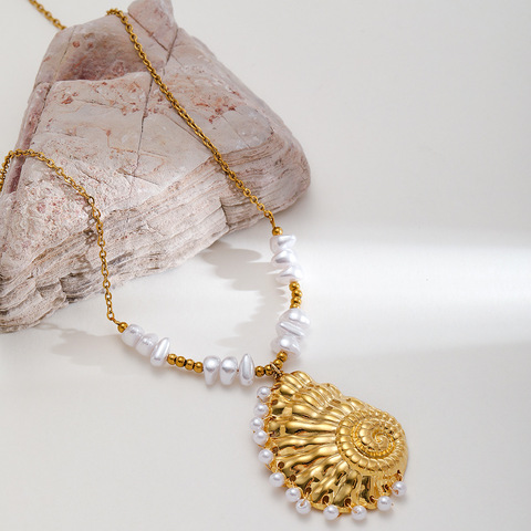 Hot Sale Conch Pendant Necklace Imitation Pearl 18K Gold Plated Stainless Steel Holiday Style Necklace for Women