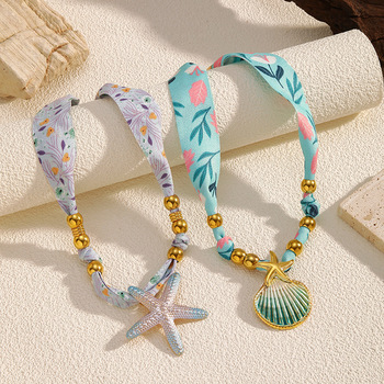 18K Gold-Plated Stainless Steel Star-Shaped Caso Requintado Tecido Praia Estilo Heart-Shaped Padrão Moda Pingente